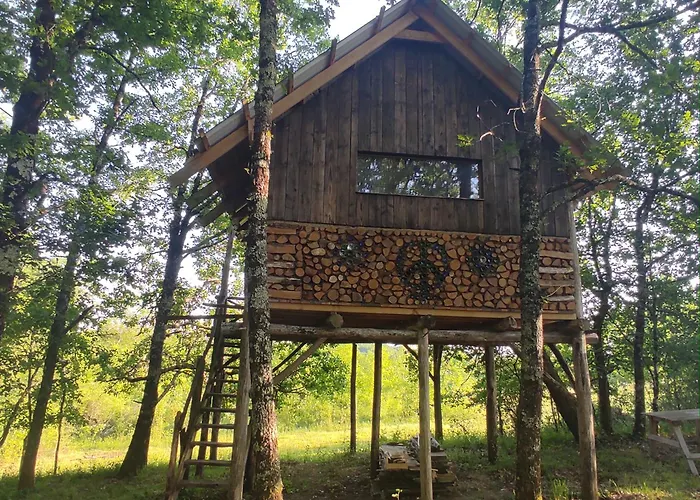 Bu tesis, Eglise Saint-Jean'a 3 km, Eglise Saint-Martin de Lamothe-Landerron'a ise 2 km uzaklıktadır. Cabane Perchee Otel balkon, oturma alanı gibi olanakların sunulduğu odaları içermektedir.